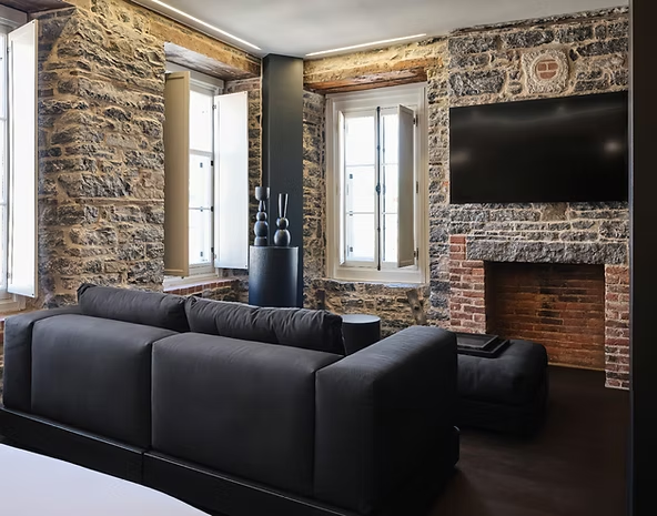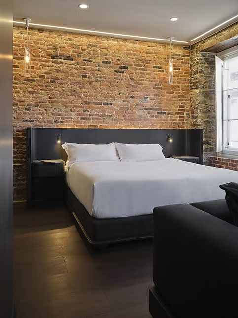 CONCEPT STAY SHOP EXPLORE EN FR BOOK ROOM FOUR SUITE, KING SIZE BED King Bed Suite with a parlour area with sofa or 2 occasional sofa, complete bathroom with bathtub.345 pieds carrés | 32 mètres carrés FIRST FLOOR Please note, Maison Du Fort has no elevator. Luggage service is available for your convenience. BOOK NOW ROOM FIVE BOOK NOW ROOM FIVE
